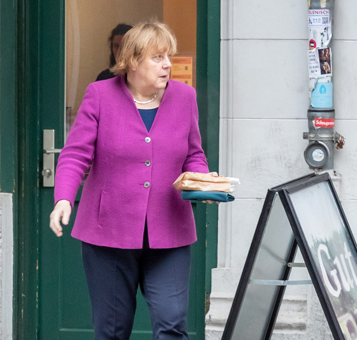 Hay cosas que no han cambiado: Angela Merkel, a sus 68 años, se mantiene fiel a la mítica chaqueta fucsia sin solapas y a la gargantilla. ¿Para qué nos vamos a liar?, pensará. Por lo demás, la vida de la mujer que estuvo al frente de la Cancillería alemana durante dieciséis años poco se parece a la de aquellos tiempos. Casi no se la ve en público, pero acaba de ser fotografiada comprando alguna de sus tartas favoritas en una panadería del Mitte, en Berlín: el local de la chef y estrella de la televisión Sarah Wiener.