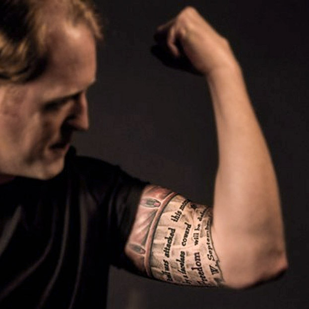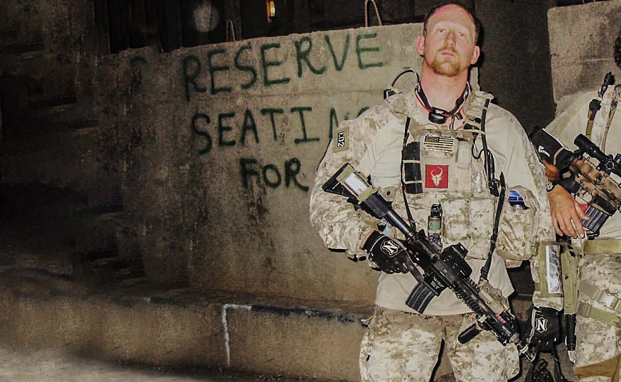 Cuanto ha vivido en sus años de SEAL –más de 400 acciones de combate a sus espaldas– le ha dejado todo tipo de marcas. Las más profundas: traumas que reconoce. «Si tienes un día malo, llamas a alguien. Si tienes un día bueno, llamas a alguien». Las marcas más superficiales son sus tatuajes. «Hay de todo —describe—: tengo del SEAL Team y un montón de citas y frases. Algunas son muy personales. En un brazo tengo mi logo: 'RO'. En otro [el que enseña en la imagen], mi tatuaje del 11-S: 'La libertad misma fue atacada esta mañana por un cobarde sin rostro, y la libertad será defendida'. Me lo tatué después de la operación de Bin Laden. Esa frase se la dije a mi gente cuando íbamos de camino».